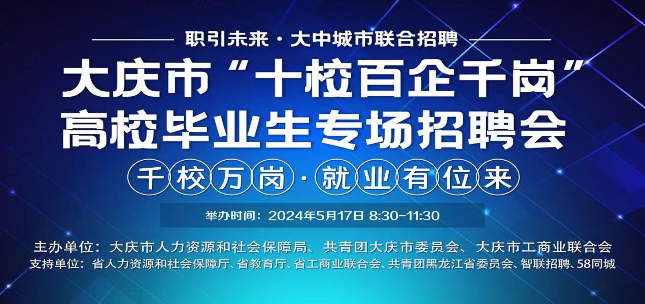 2024年5月17日上午8:30分---11:30分,大慶市人力資源和社會保障局舉辦了“十校百企千崗”高校畢業(yè)生專場招聘會。